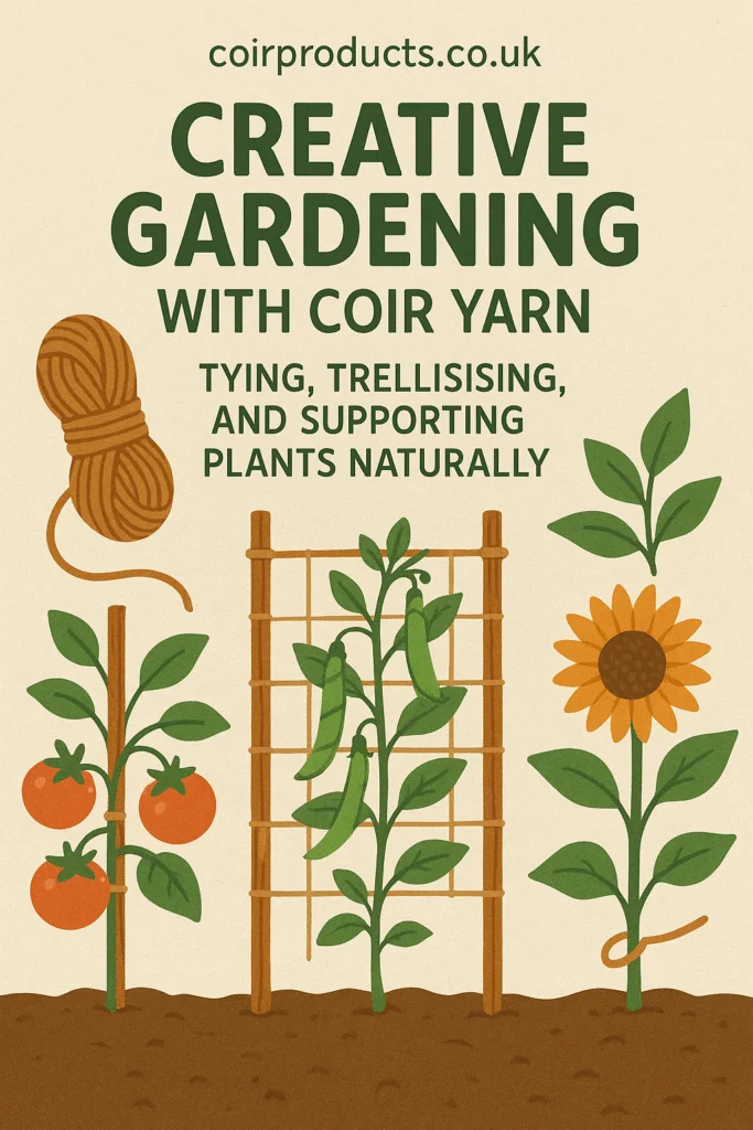 Climbing plants like peas, beans, and cucumbers need vertical support. Coir yarn can be used to create simple trellis systems.