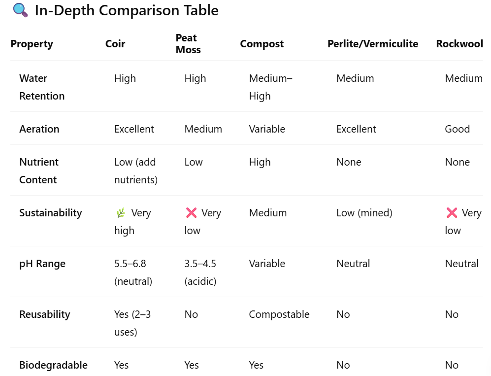 - In hydroponics or professional setups, coir + perlite is often a go-to combo.